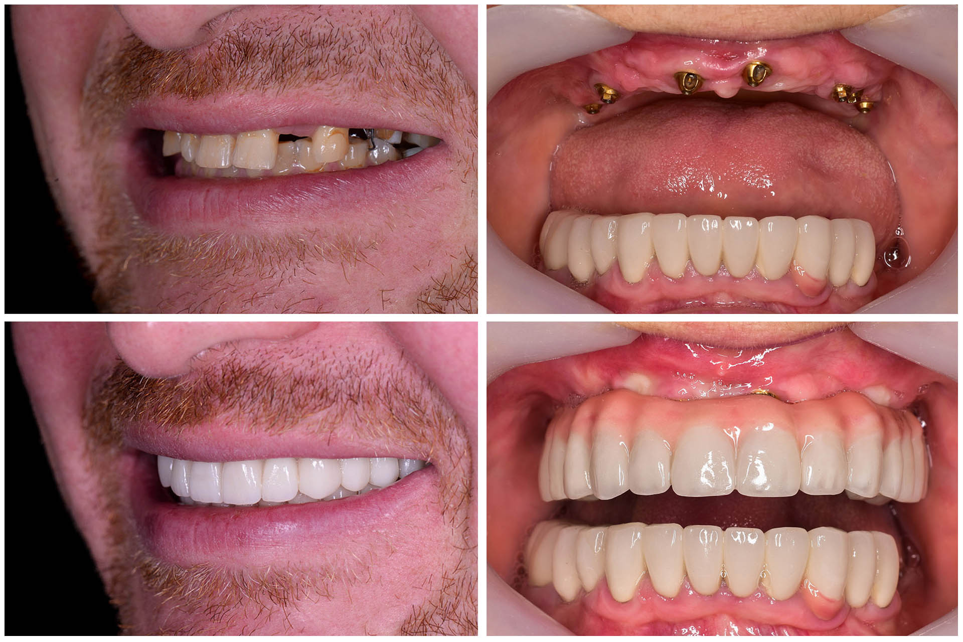 Full-mouth dental implants (also known as “Teeth In A Day” or All-On-4™, All-On-6, All-On-X) uses only 4-6 dental implants, strategically placed into the jaw bone to support the entire row of teeth. This provides a permanent solution for missing or failing teeth, restoring chewing ability, aesthetics, and quality of life.
